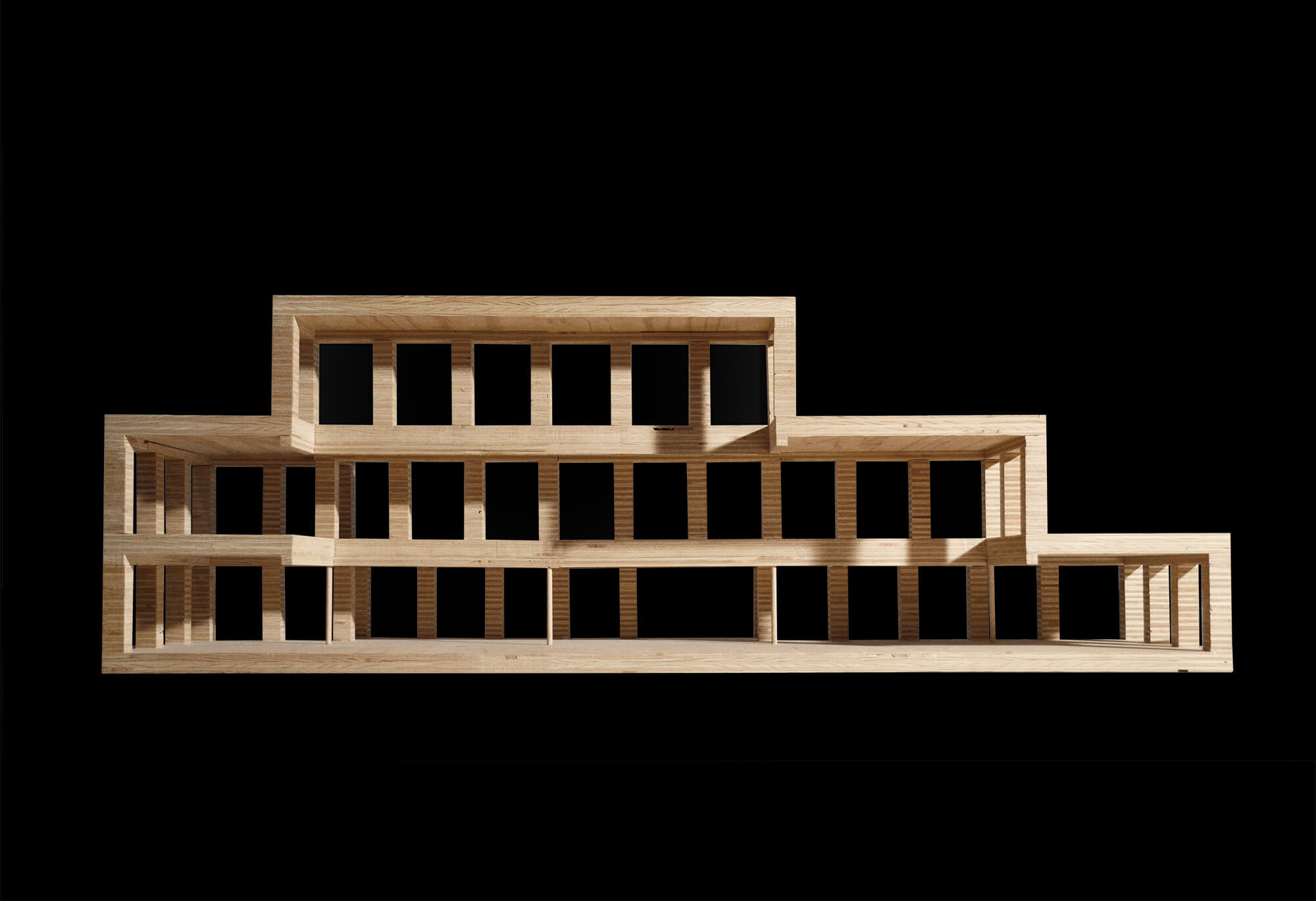 Den repetetiva och lågmälda fasadgestaltningen bygger på idén om byggnaden som bakgrund för sitt innehåll. Det ger också flexibilitet eftersom nya entréer kan tas upp och glasningar läggas till eller tas bort, utan att den grundläggande arkitektoniska gestaltningen förvanskas.